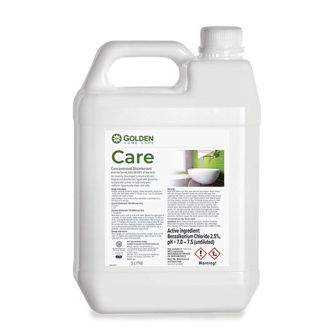 Care is a highly concentrated disinfectant, intended for use on inanimate surfaces and designed to destroy a wide variety of germs.