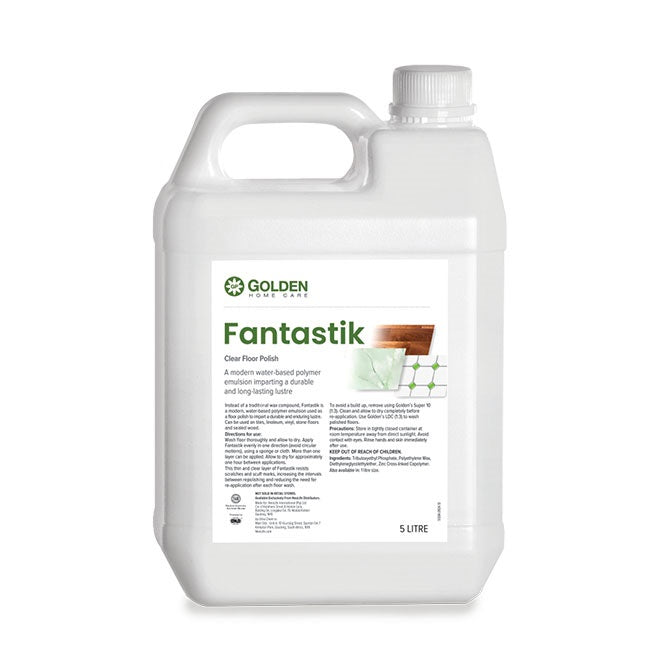 Instead of the traditional wax compound, Fantastik is a modern, water based polymer emulsion used for floor polish as well as tiles, linoleum, vinyl, marble and sealed wood.